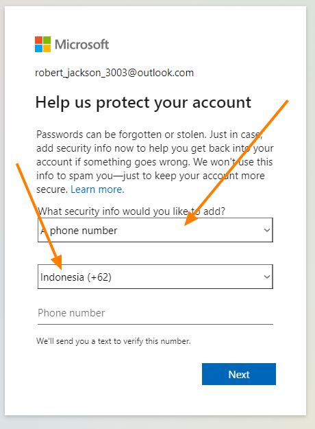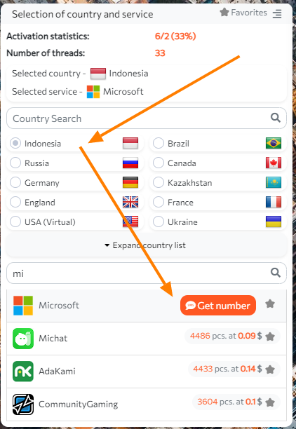 Select "Create one" and then click "Next".In the opened window, click on the link "Get a new email address".Come up with your login and choose the domain you want to use.Next, come up with a password for your email and click "Next".In the next step, enter your first and last name. You can use any name you want.In the next step, select your month, day, and year of birth. You can leave the country as default or choose the one you like.Then, you'll be asked to complete a robot check. It's easy, just complete the check and click "Next" to create your account.Now we're on the main page. Click on the round icon with the avatar in the upper left corner and choose the "My Microsoft account" link from the menu.On the opened page, scroll down and select the "Security" tab, and then click on the "Security dashboard" button.We land on the security page, where we select the "Advanced Security options" panelA window will open where you need to choose how you want to protect your account. From the list, select "Phone number", and from the country list, select "Indonesia"Go to Get-SMS and select Indonesia as the country and Microsoft as the serviceClick the "Get Number" button, and an order management panel will open where you can copy the received numberGo back to the Microsoft website and enter the received number, then click the "Next" button. The code should be sent.Then go back to Get-SMS and wait for the code to appear in the "Code from SMS" field. Do not complete the order!We enter the received code on the Microsoft page. Now another window with the title "Verify your identity" will open, click on the panel where it says "Text + *******"You will be asked to enter the last 4 digits of your phone number, so we go back to Get-SMS, copy the last 4 digits and enter them on the Microsoft website and click on the "Send code" button.We go back to Get-SMS, click on the "Get more SMS" button and wait for the code.After receiving another code, we copy it. Usually, the second code comes in 7 digits.We enter the received new code and check the box next to "Don't ask again on this device." Click "Verify."After that, we will be redirected back to the "Security" page. On the opened page, scroll down and find the line "Recovery code," click on the "Generate a new code" link.A window will appear with your new recovery code written in it, write it down and save it. We will need it when we don't have access to the phone number.Congratulations, you have registered another Microsoft account.As always, Get-SMS helped us in registering accounts on virtual numbers.